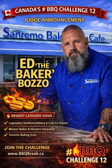 For Canada’s BBQ Challenge 12, Ed “The Baker” Bozzo will be judging the Dessert Category, evaluating creativity, flavour, and presentation in every sweet BBQ creation.